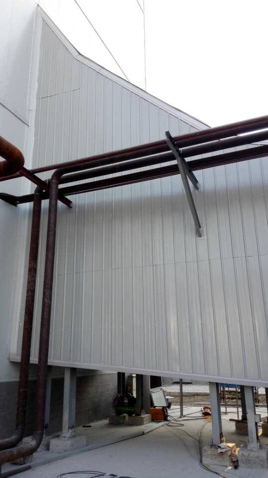 因業(yè)主、總包、發(fā)包方管理人員對(duì)現(xiàn)場(chǎng)施工用材料意見(jiàn)不一致,導(dǎo)致汽機(jī)房壓型板材確定較晚。待材料確定后,項(xiàng)目部積極與采購(gòu)人員、生產(chǎn)廠家及貨運(yùn)司機(jī)溝通,確定精確的到貨時(shí)間。在等貨的間隙,合現(xiàn)安排工作,最終讓現(xiàn)場(chǎng)未出現(xiàn)窩工、停工待料的情況發(fā)生。